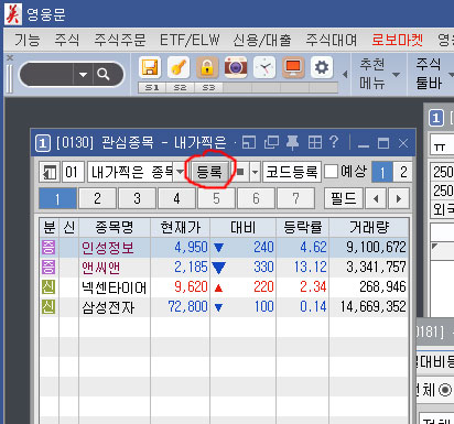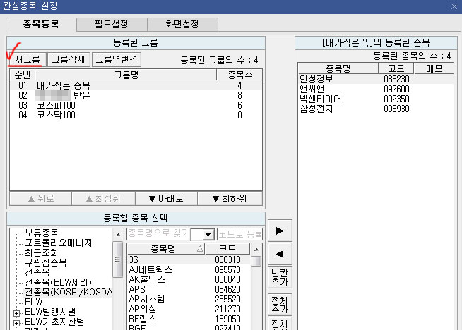 관심종목 창은 여기에서 !!~~