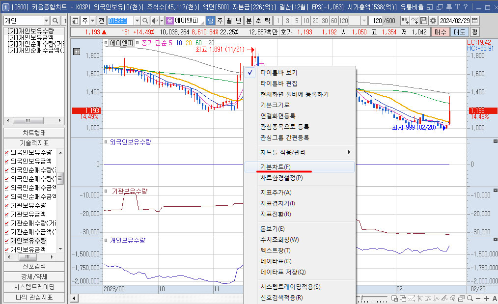 마우스 우측버튼> 기본차트