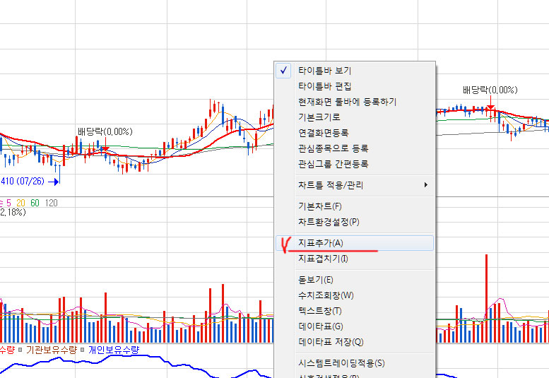 빈곳에 마우스 우클릭 > 지표추가