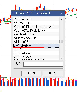 밑으로 한참 내려오면 > 가격 이동평균을 적용한다.